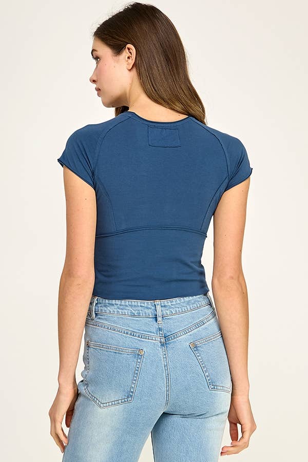 A fitted crop top designed with contoured seam lines for a clean sculpted silhouette. Can definitely be worn as a cute athleisure top!